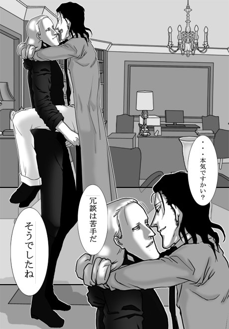 クイーンサイズのベッドの片側に、体の長い男が寝転がっている。上着とブーツが床に落ちているだけ、以前よりマシか。口に出した事は無いが、靴を履いたままベッドに上がるのだけはガマンがならない。